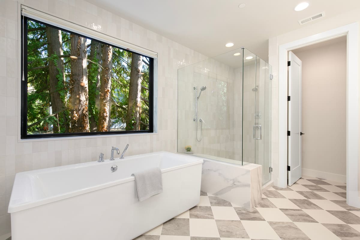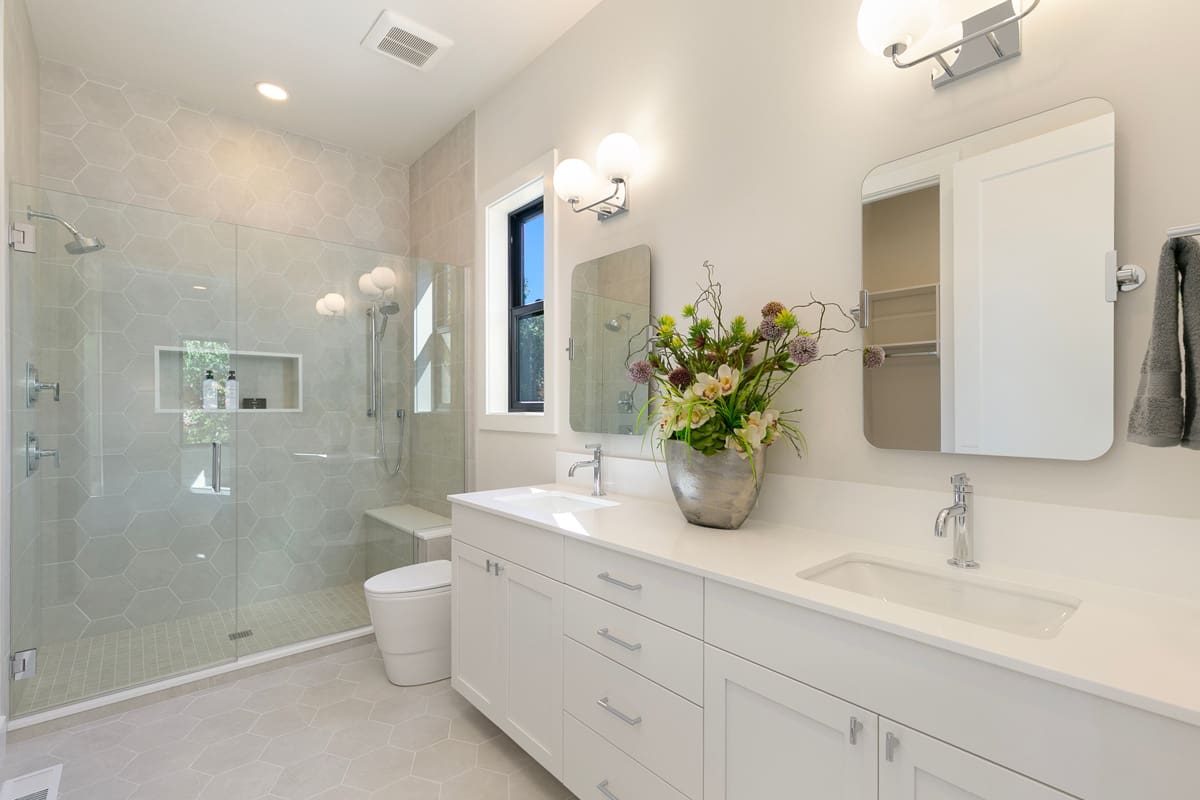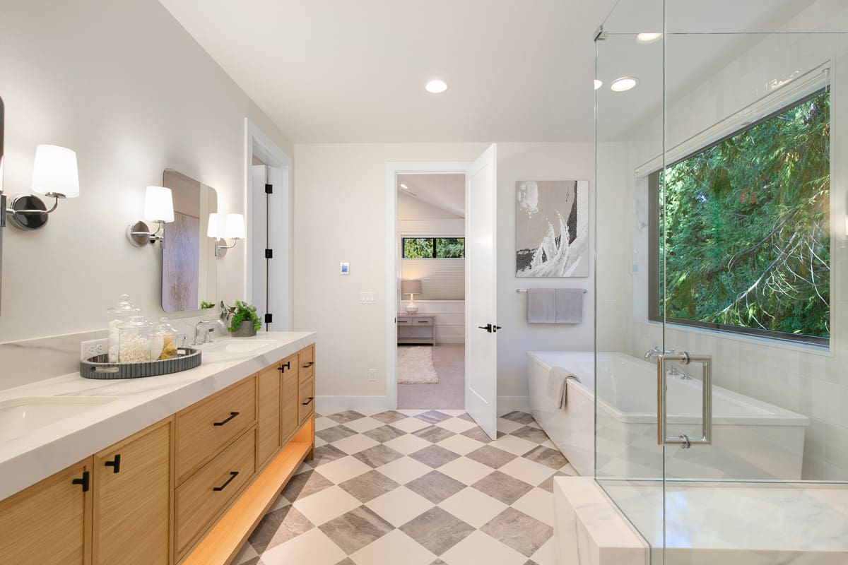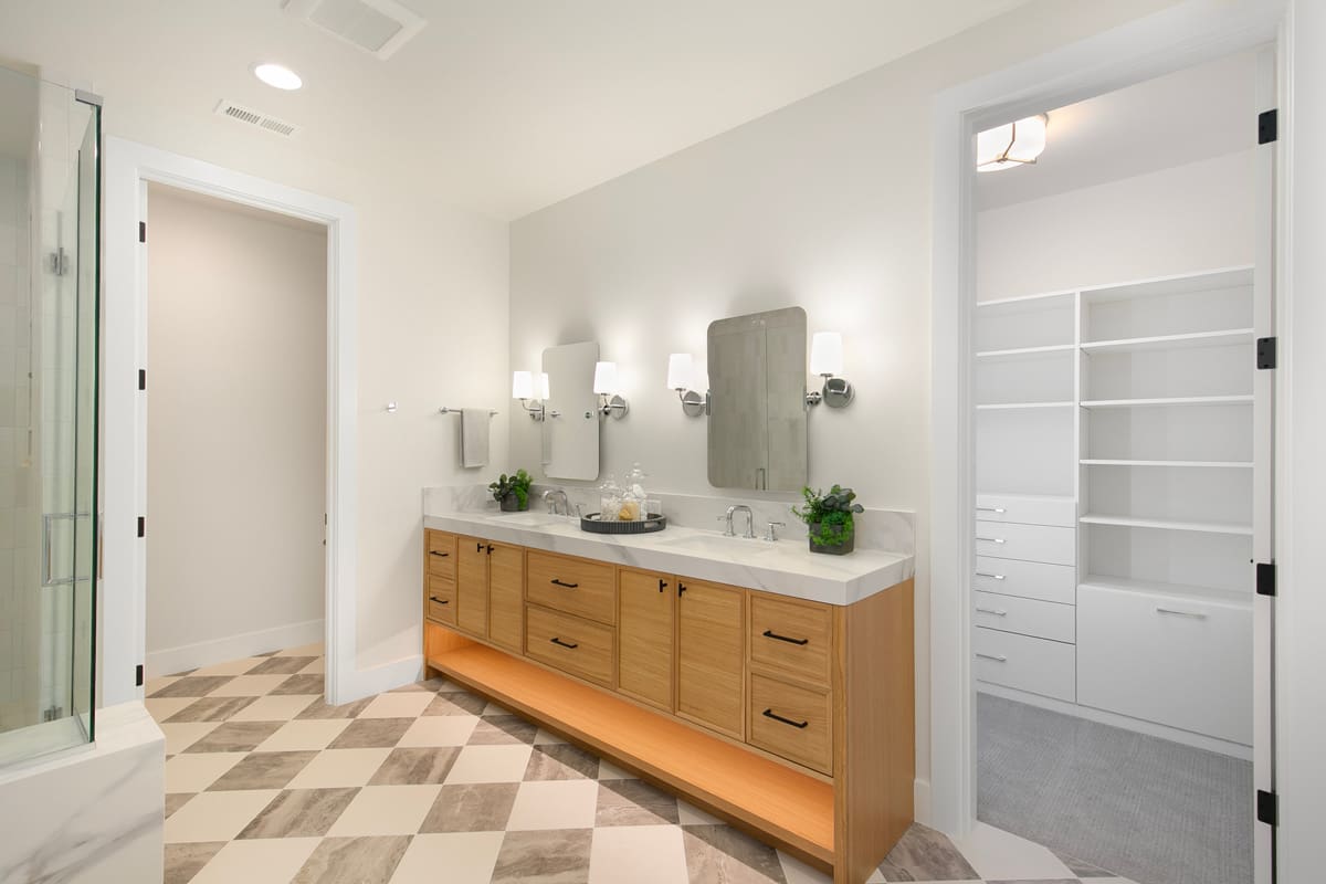 Primary Suite w/ double vanity, large shower, lavish soaking tub and extensive walk-in closet
