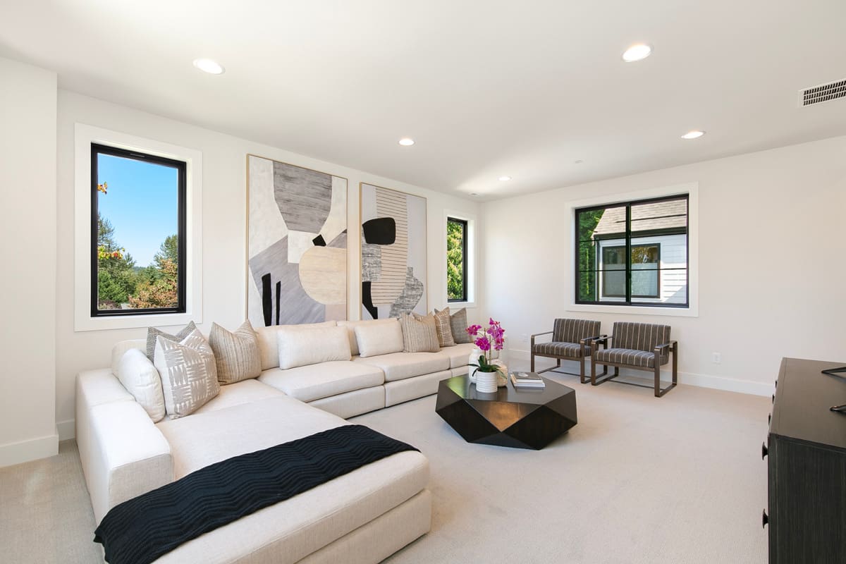 Two-story volume great room with upper level catwalk
